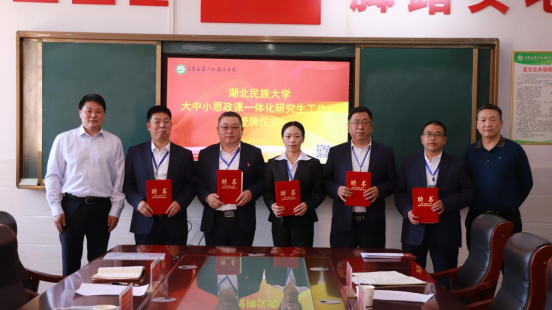 2022年5月5日下午,我院与宣恩县清江外国语学校合作建设的大中小思政课一体化研究生工作站正式揭牌。Beat365唯一官方网站马克思主义学院院长徐铜柱、党总支副书记张明波,学校研究生处副处长李伟,宣恩县清江外国语学校校长林鸿与该校领导班子成员、全校政治课教师出席授牌仪式。