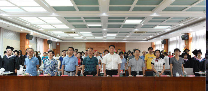 本网讯(通讯员 赵光荣 黄丽兰/文 罗紫彤 孙航/图)6月23日下午,我院于德智楼三楼多功能报告厅成功举办2022届本科生毕业典礼。我院党总支书记罗成富,院长徐铜柱,党总支副书记张明波,副院长张胥及全体教师应邀出席,张明波担任毕业典礼主持人。