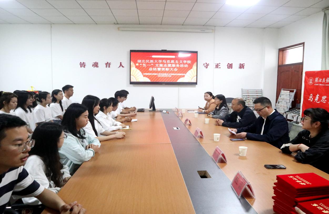 5月16日上午,我院举办“五一”文旅志愿服务活动总结暨表彰大会,恩施市文物事业管理局局长柳洪涛,办公室主任邓娜,社教部主任杨蕾,我院党总支副书记张明波,党政办公室主任崔蕤和学生科科长杨婷受邀出席,我院学生志愿者参与此次活动。