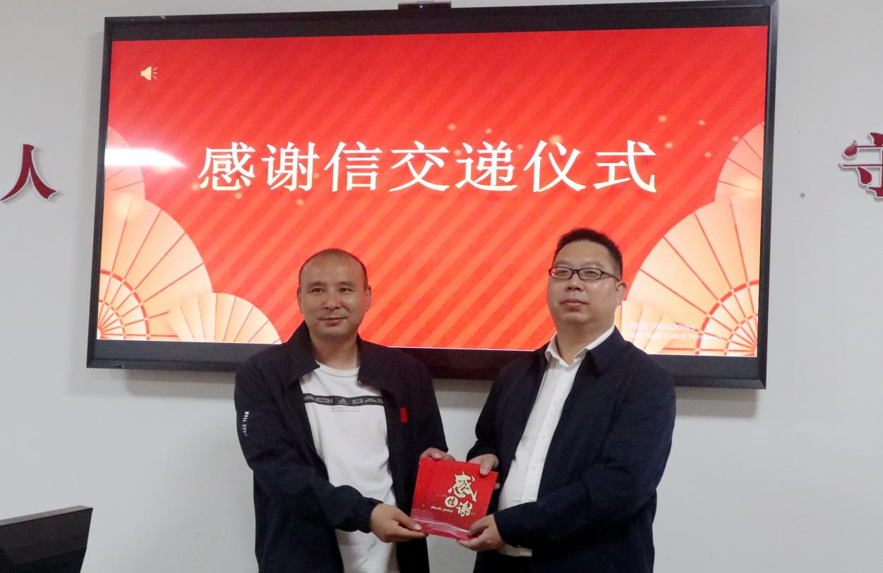 (柳洪涛向张明波递交感谢信)