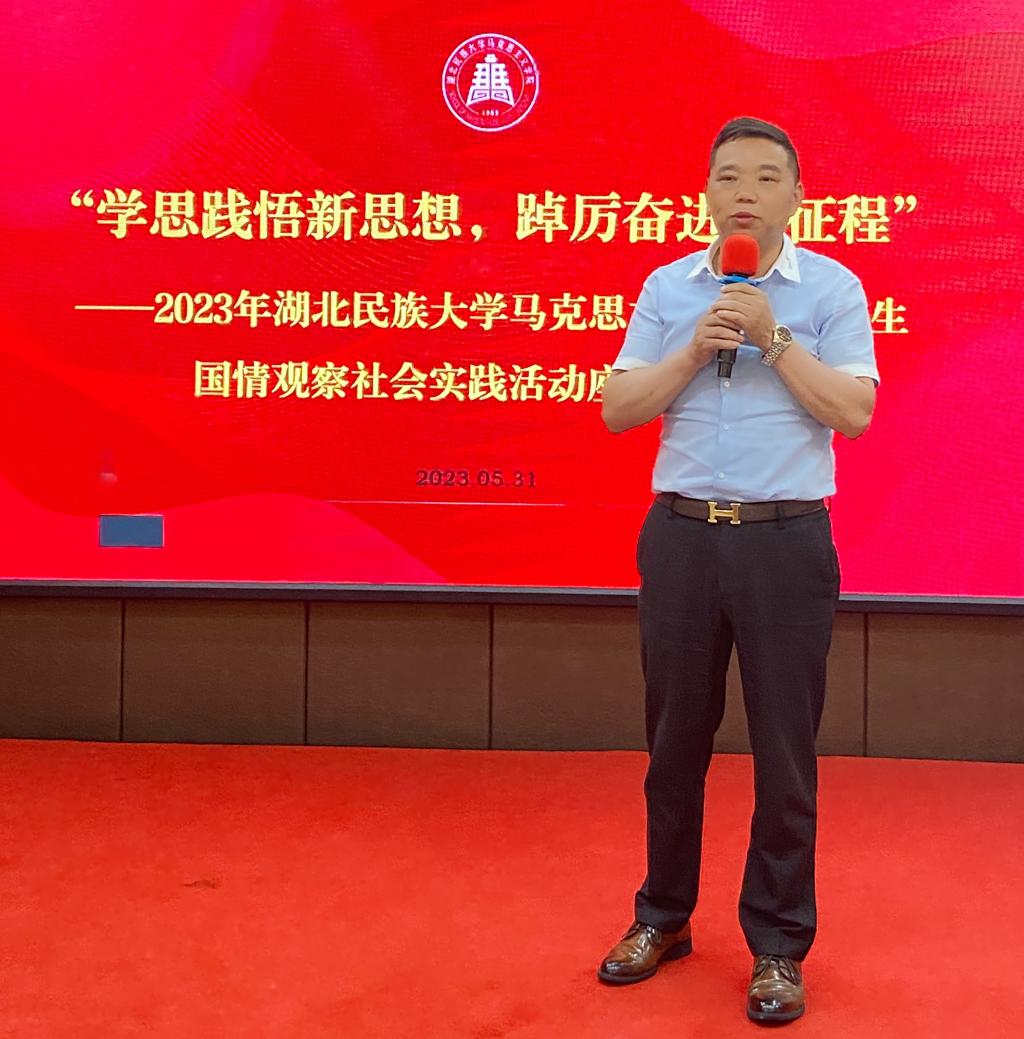 5月31日,我院在利川市汪营镇齐跃桥村,举行“学思践悟新思想,踔厉奋进新征程”——2023年Beat365唯一官方网站马克思主义学院研究生国情观察社会实践活动。马克思主义学院党总支副书记张明波,汪营镇党委书记熊伟,思清农业有限公司董事长温华健,驻村第一书记丁恒,州政府办公室驻齐跃桥村尖刀班成员,以及我院部分研究生参加有关活动。