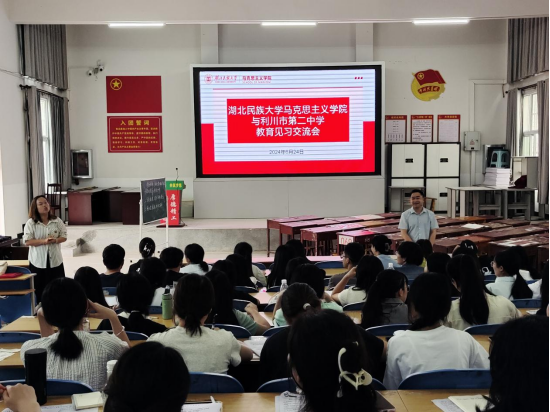为提升学生师范实践技能,帮助同学们适应未来教育生涯,马克思主义学院于624日前往利川市第二中学开展第三次教育见习活动,实地观摩高中政治课堂。本次见习由马克思主义学院教学科科长兰洁、教师向蓉带队,2021级思想政治教育专业全体学生参与。