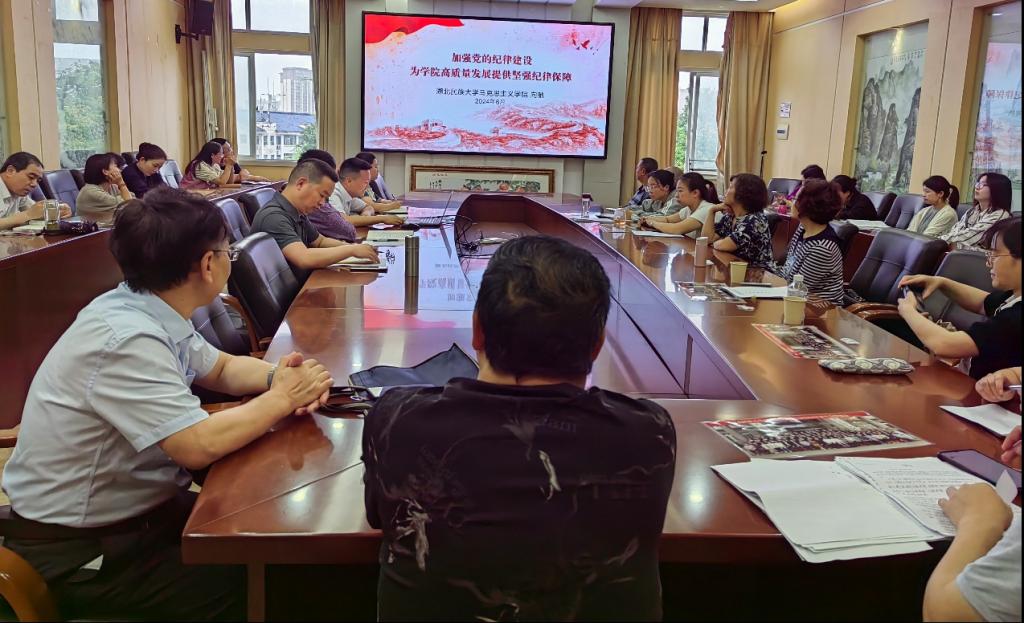 2024年6月27日下午,思想政治理论课教学部党支部在马院会议室开展“深入开展党纪学习教育 锻造‘六要’思政课教师队伍”主题党日活动。