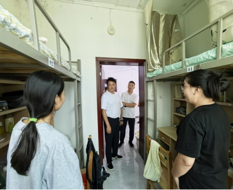 在走访过程中,学院领导和老师们与博爱三栋、五栋、七栋和八栋的研究生新生进行了亲切交谈。“家乡是哪里的?”“来到学校还适应吗?”“生活上有什么困难吗?”每到一个宿舍,马克思主义学院院长徐铜柱都会细致询问同学们的生源所在地、入学感受和饮食起居适应情况,耐心倾听新生初入校园的感受与体验,全面了解同学们入学后的生活状况和学习规划。党总支书记向驰勉励同学们要尽快完成角色转变、适应新环境,聚焦学术深耕与创新能力培养,合理规划,适应研究生阶段的学习节奏和生活模式。张胥、欧玲、熊治东老师分别就同学们关心的问题给予耐心解答和积极引导,鼓励新同学积极融入集体,建立融洽的室友关系,互相帮助,共同进步。