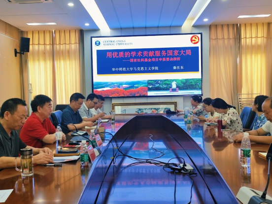 本网讯 7月14日上午,华中师范大学教授、博士生导师秦在东莅临我院并于德智楼三楼会议室作以“用优质的学术贡献服务国家大局——国家社科基金项目申报要诀探析”为主题的学术讲座,我院党总支书记罗成富、院长徐铜柱及学院师生到场聆听。本次讲座由罗成富主持。