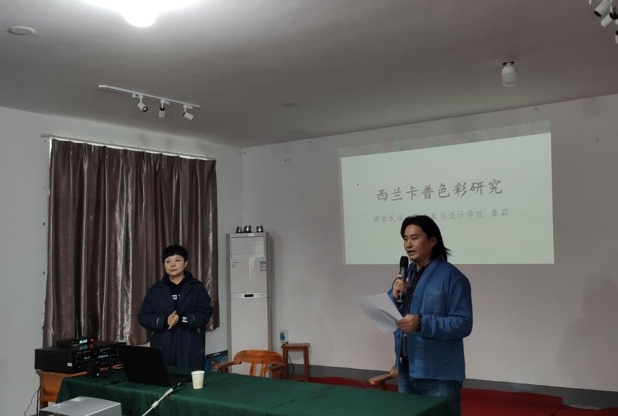 (通讯员 陈浩、王哲林)2020年10月18日,我院覃莉教授受邀为“东西部协作杭州市帮扶恩施州项目—民族民间工艺技能培训班”作西兰卡普色彩学讲座。覃教授从织锦简介、色彩基础、图纹色彩、色彩设计四个方面进行了全面的诠释,在色彩图纹方面重点分析了阳雀花和马毕花这两个典型的图纹色彩设计。学员们充分运用西兰卡普色彩学知识,发挥创新意识,大胆尝试,为后期西兰卡普织造色彩设计奠定了良好的基础。本次讲座是湖北民族民间文化艺术研究中心助力地方经济与文化发展的一次实践,也是学术研究与服务社会结合方式的有力尝试。