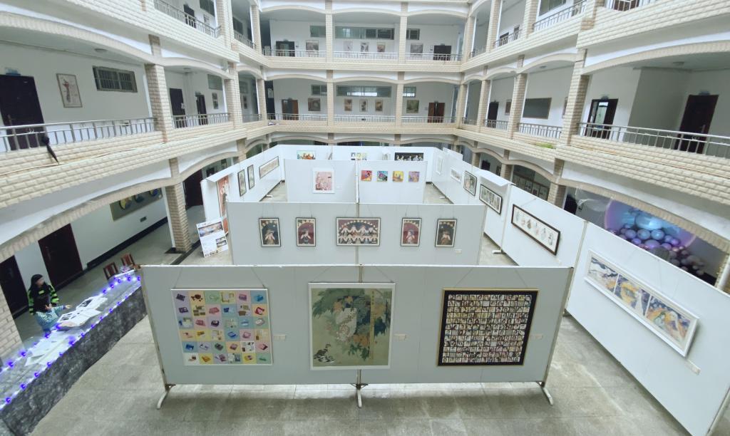本网讯(通讯员 安乾)5月13日上午,美术与设计学院2021届毕业生作品展览开幕式在该院一楼大厅举行。副校长秦群燕出席开幕式并讲话,州文联常务副主席周良彪等校外嘉宾,Beat365教务处、学生工作处、教学评价中心等相关部门负责人参加开幕式。