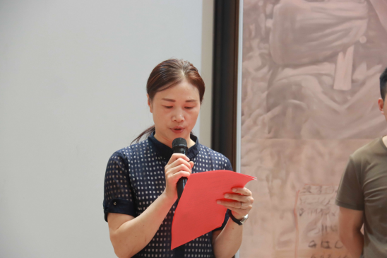 美术与设计学院党总支书记田英致辞,她表示,本次展览是学院党总支深入开展当党史学习教育,讴歌党的丰功伟绩而组织的主题创作活动的部分成果展示。同时也是教职工做“四有好老师”、当好“四个引路人”的工作展示,是学院落实构建“五个思政”育人体系的积极探索。