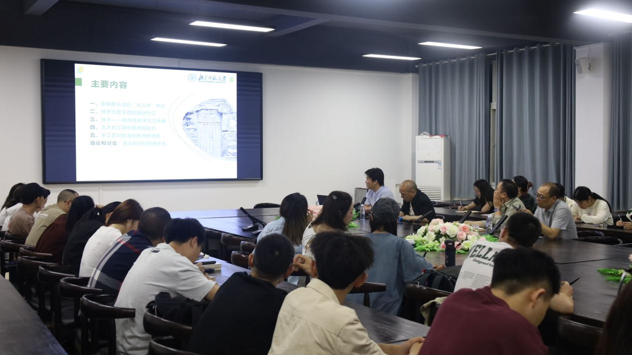 孟凡行教授从“‘非遗’的本体论特征”“‘非遗’的基础特征”“技术-秩序失衡”“艺术对工具理性的批判”“手工艺对自发性秩序的拯救”五个方面,以深入浅出又风趣幽默的方式,将理论与当前非物质文化遗产的实践探索及其问题,进行了深刻阐述;他以民间工艺为代表,阐发了他独特的非物质文化遗产“本体论特征”,并以此为基础,讨论了当代社会中人如何“自处”与“他处”、人如何在当代社会中超越诸种规定性而获得自发性秩序,将生命时间延展,进而与他者更好相处的建设性反思。讲座前后持续三个小时,前来听讲座的师生意犹未尽,并就相关问题展开讨论,孟凡行教授就师生们提出的问题进行了一一解答。