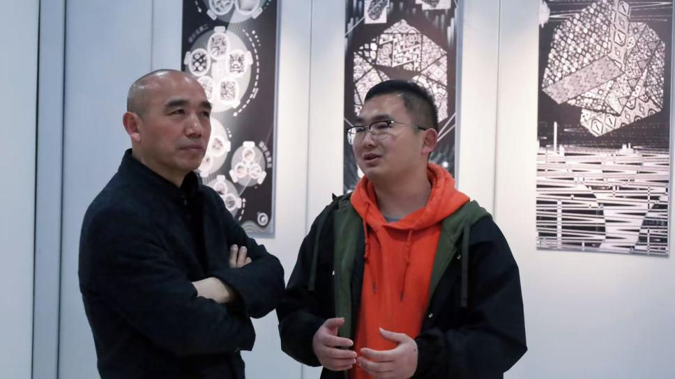 石庆秘院长与学生在展览现场交流