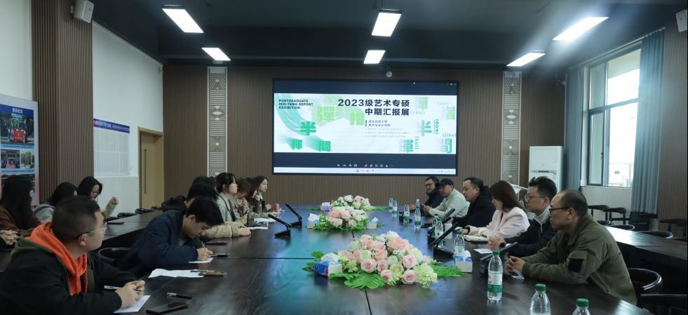 2025年4月1日上午,Beat365唯一官方网站美术与设计学院2023级艺术专业硕士研究生中期汇报展“弹指半挥间”在美术与设计学院12C一楼志美展馆大厅正式拉开帷幕。本次展览共展出了12位来自艺术设计和美术专业的艺术硕士生所创作的47余件作品。学院党总支书记田英、院长石庆秘、党总支副书记向贤海、副院长向思全以及专业教师、学生等50余位师生出席了开幕式。