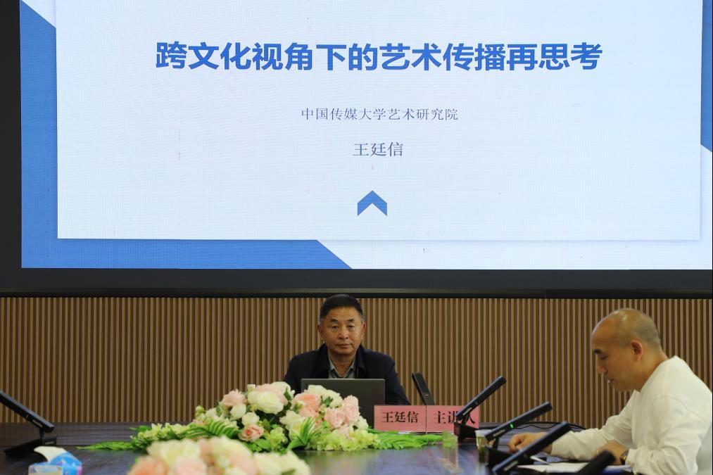 2025年4月25日下午,民族学与社会学学院与我院共同邀请中国传媒大学艺术研究院院长王廷信教授,在 12B501 多功能教室举行了题为“跨文化视角下的艺术传播再思考”的学术讲座,美术与设计学院、民族学与社会学学院部分教师、本硕学生听取了讲座。讲座由美术与设计学院院长石庆秘教授主持。