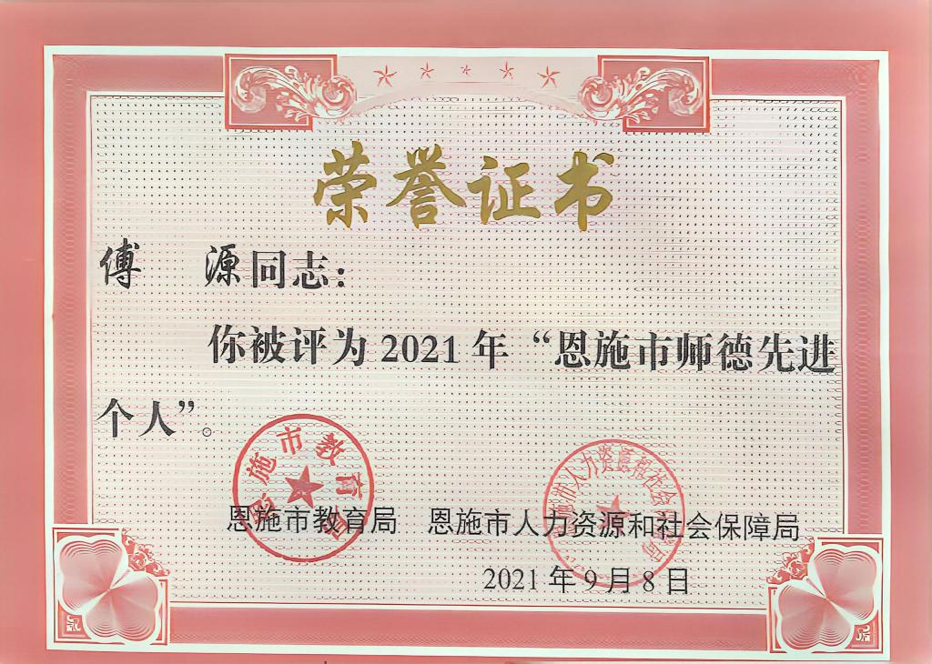 在硒都民族实验小学的校园内,处处都有她忙碌的身影。在无数次的挑灯夜战、挥汗如雨间,荣誉恰似繁花,开始在她身旁缤纷绽放。2021 年“恩施市师德先进个人”的殊荣,是对她高尚师德的赞许;2022 年“恩施市优秀教师”的称号,是她辛勤耕耘的有力见证;2023 年“恩施市名师”的荣耀,更是她卓越教育能力的彰显。