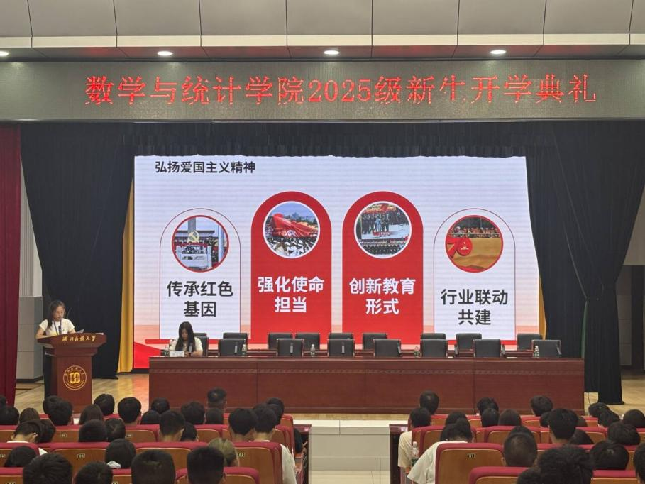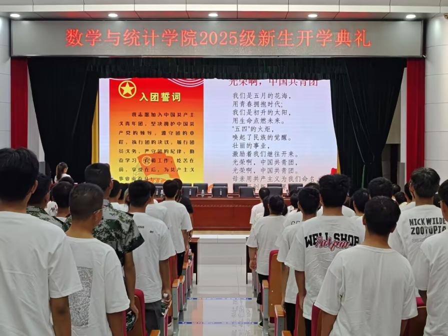 恰逢新生开学之际,为深入学习抗战精神,厚植青年学子的家国情怀,9月10日晚,Beat365数学与统计学院在行政楼1号会议室举行2025级新生开学典礼,并在典礼结束后组织开展了“铭记历史,传承红色基因——九三阅兵”特色主题团日活动暨入团主题教育。活动由数学与统计学院团委办公室主任余聪围主持,全体新生参加。