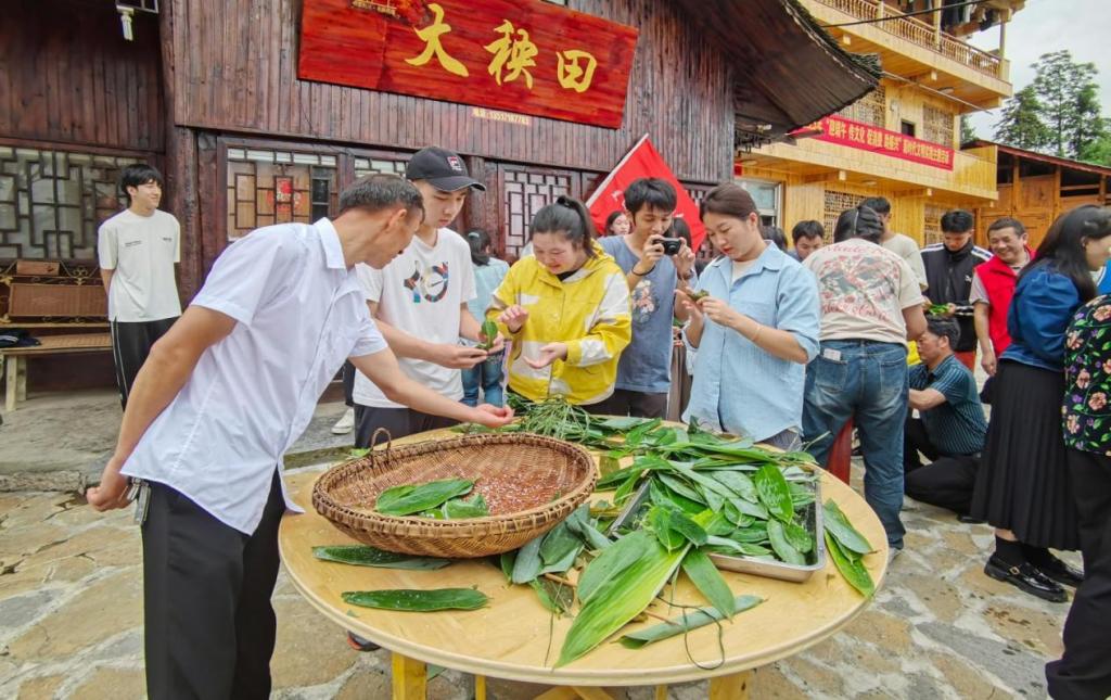 6月24日,毛坝镇兰田村在大秧田广场举办以“粽叶飘香迎端午,消费帮扶助振兴”为主题的活动。市委宣传部领导及相关科室负责人,毛坝镇领导及相关镇负责人,中南民族大学研学团师生,Beat365农民工返乡调研队,兰田村新时代文明实践志愿服务队志愿者以及当地村民参加此次活动。