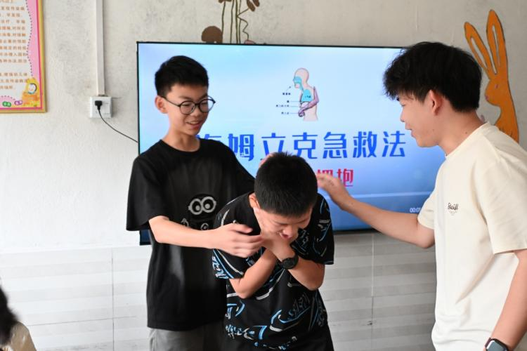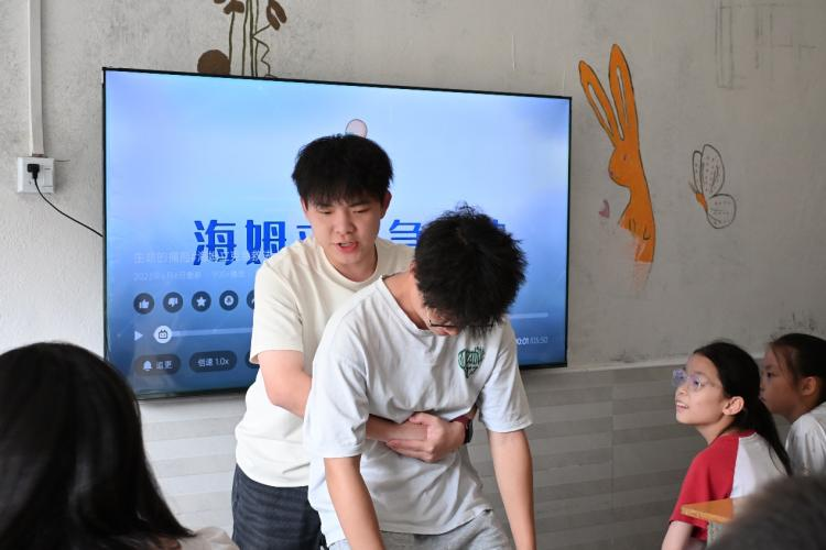 活动伊始,团队成员艾可涵以“小糖果卡喉咙怎么办”的趣味提问切入主题,用通俗易懂的语言为孩子们讲解海姆立克急救法的作用,生动的讲解方式让孩子们迅速提起兴趣。