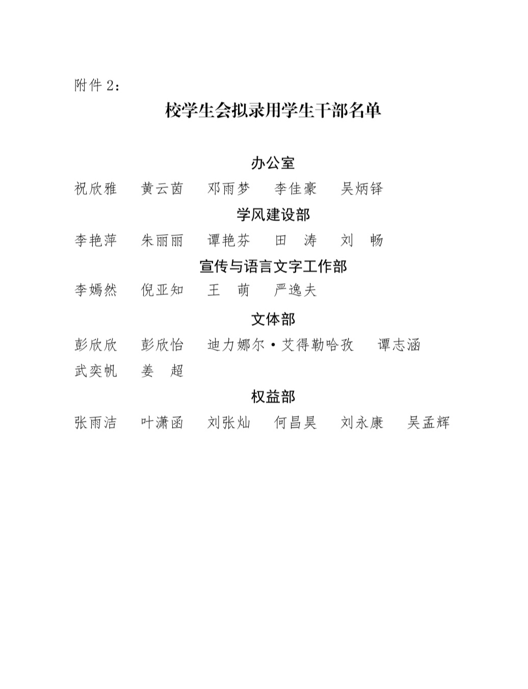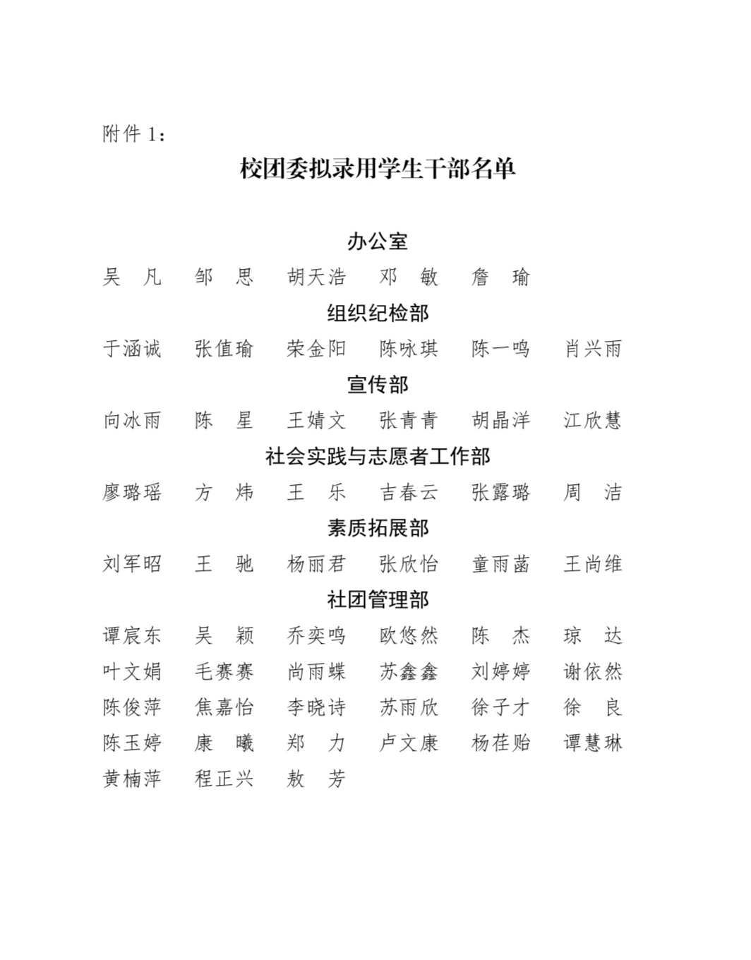 关于公布校团委、校学生会学生干部 招新拟录用名单的通知