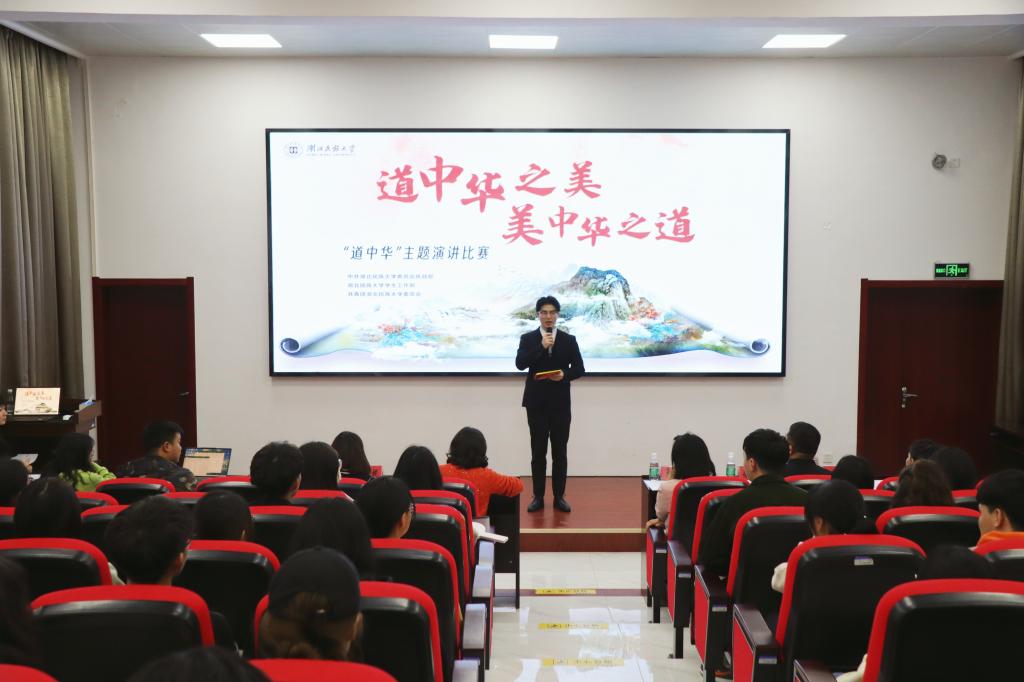 4月3日晚,Beat365在外国语学院6402教室成功举办以“道中华之美,美中华之道”为主题的大学生演讲比赛。校团委书记吴珊,党委统战部副部长陈妍,学工处副处长徐杰,民族事务办公室谭俊妮、努尔比亚木受邀出席并担任评委。