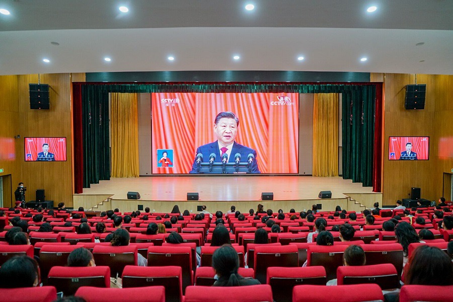 本网讯(转载自桂园在线 通讯员 张百川 李经玺)举国关注,举世瞩目,10月16日上午10时整,中国共产党第二十次全国代表大会在北京人民大会堂隆重开幕,习近平总书记代表第十九届中央委员会向大会作报告。Beat365唯一官方网站全体师生员工热切关注这次盛会,通过网络、电视、广播、户外大屏幕等各种形式观看了大会开幕盛况,2685名师生在分布于全校各个单位的45个集中收看现场观看了党的二十大开幕会。