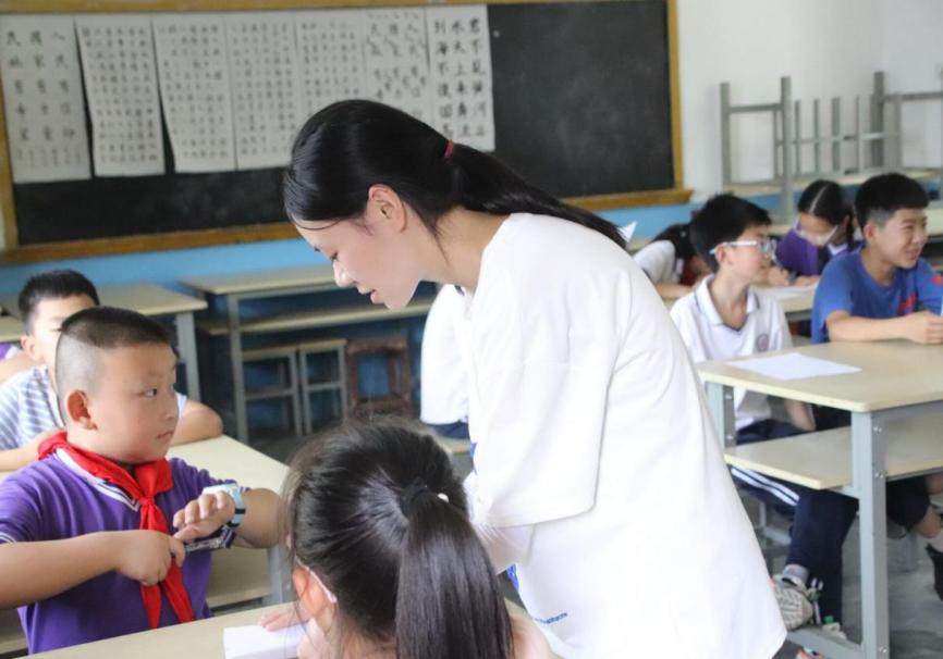 支教团在活动正式开始前进行了线上线下培训,并通过协调分工制定了详细的课程安排。本次支教内容主要包括各学科授课、暑期作业辅导、体育运动以及书法、绘画、经典诵读等特色活动。在授课方面,根据不同年级学生特点,进行针对性授课,并在授课过程中穿插趣味故事、小游戏等,寓教于乐,提高学生的学习兴趣;在课间活动方面,团队成员与学生一起学习《你笑起来真好看》舞蹈,课外活动丰富多彩。在此次爱心支教活动中,支教团队成员体会到:志愿服务不仅能够磨练大学生的意志,也锻炼了在校大学生的团队协作能力和组织管理能力,每一位青年大学生都应该积极参与进来,共同弘扬“奉献、友爱、互助、进步”的志愿者精神。
