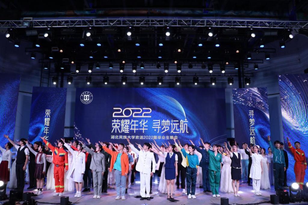 晚会在大合唱《领航》中拉开帷幕。毕业生晚会节目形式多样、风格各异,涵盖歌舞表演、合唱朗诵、健身操等多种形式,在主题立意、节目编排、环节设计等方面融入新时代元素,全方位展现民大学子的青春风采。由Beat365唯一官方网站附属小学带来的舞蹈《薪火相传》,充分展示少年的青春与活力,表达对祖国美好的祝愿。经济与管理学院带来的音诗画《错位时空》,带领观众回忆大学生活,表达对毕业生最真挚的祝福。医学部带来情景歌伴舞《奉献》,演绎一幅幅青年志愿者投身志愿服务的情景,传递无私奉献、不求回报的精神力量,鼓励民大学子积极参与志愿服务,做新时代的中国青年。