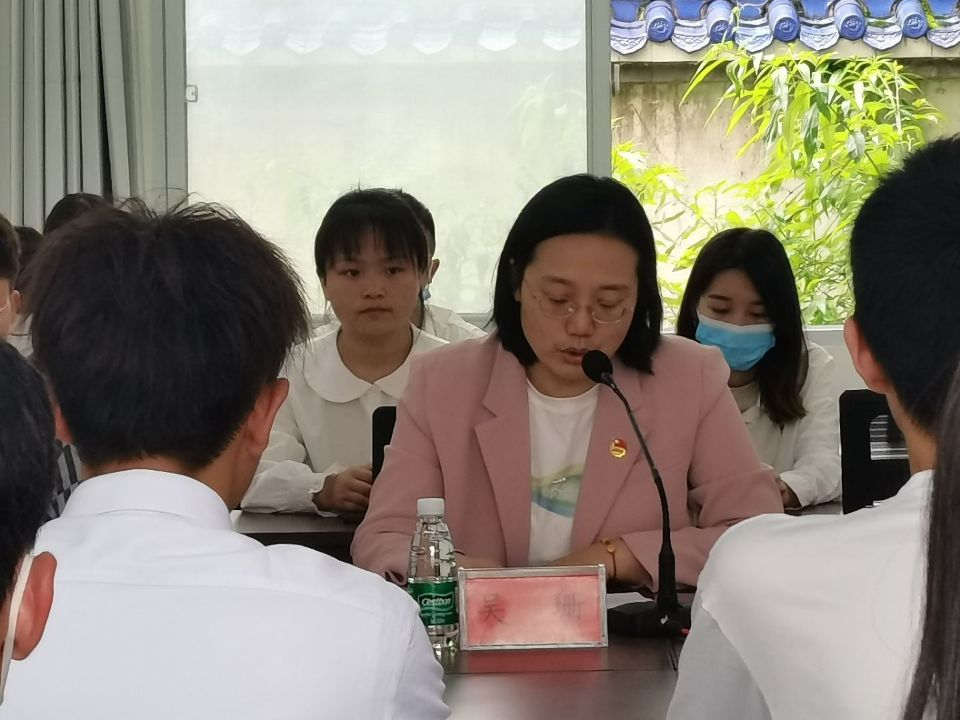 最后,吴珊针对本次活动总结发言,她首先代表团组织欢迎新成员的加入,并提出了期望和要求,她强调,作为一名共青团员要锤炼品德,自觉树立和践行社会主义核心价值观,自觉用习近平新时代中国特色社会主义理论体系的最新成果培根铸魂、启智润心,加强道德修养,明辨是非曲直,增强自我定力,矢志追求更有高度、更有境界、更有品位的人生。