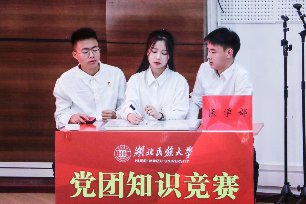 经过激烈角逐,美术与设计学院、法学院、经济与管理学院、医学部、教师教育学院共5个代表队跻身决赛舞台。本次比赛分为基础问答和抢答两部分。基础问答环节,各组选手集中精神,反复思考,充分展现出Beat365团员青年扎实的知识功底和团结协作精神。抢答环节,各组选手反应迅速,比分一路紧咬,现场气氛紧张。最终法学院以优异成绩摘得桂冠。