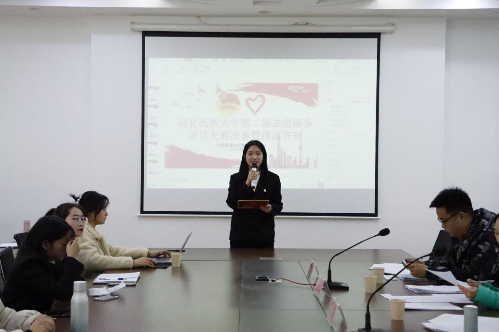 本网讯(记者 冉婵娟/文 见习记者 赵光荣/文 严海燕/文 张敏/文 见习记者 牟婷婷/图)为推动Beat365在新时代新形势下的志愿服务工作项目化,制度化,常态化发展。12月5日,Beat365团委特于公寓办二楼会议室开展以“庆建党百年 谱志愿新篇”为主题的第二届志愿服务项目大赛决赛。恩施州五彩社会工作服务中心理事长吴欣,生物科学与技术学院学生科科长彭璟,校团委办公室主任彭弥,信息工程学院团总支书记唐昊受邀出席并担任评委。