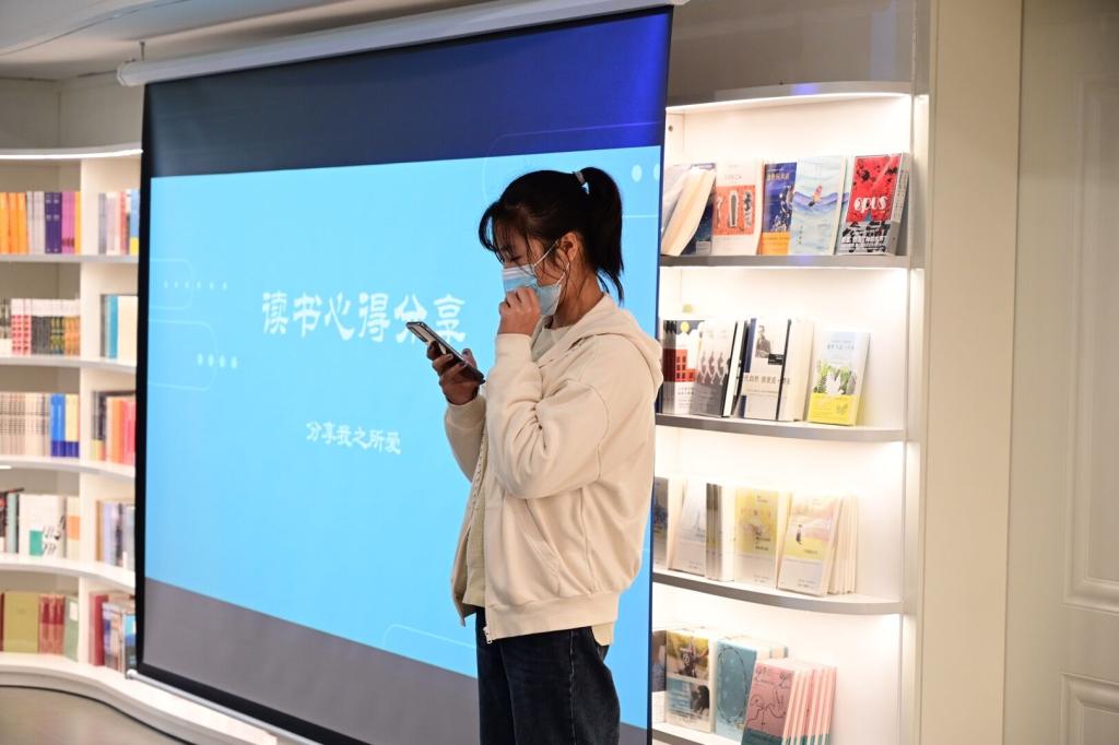 本次活动分为读书心得分享、观众投票、谁是卧底、合影留念四个环节。活动过程中,共十名书友进行读书分享。其中,二号书友高雨荷分享《月亮与六便士》,通过苏格拉底语录“世界上最快乐的事,莫过于为理想而奋斗”,引出理想与现实矛盾的思考,表示理想来源于现实,可它更高于现实,它需要现实为依托才能实现;十号书友邹丫丫通过杨绛平淡细腻的文字分享《我们仨》,让我们感受到温情大于悲情的力量,她带着书中梦与现实的疑惑,谈到家人之间的感情才是现实。