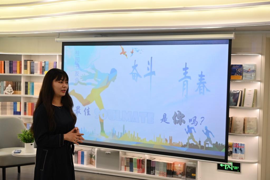 活动伊始,彭弥致辞,她结合数字媒体时代背景,谈到希望通过有趣的方式让读书融入大学生生活,也希望读者通过书友会展现自我,提高阅读和交流沟通的能力,并在分享读书感悟过程中,提高阅历,增加知识储量。
