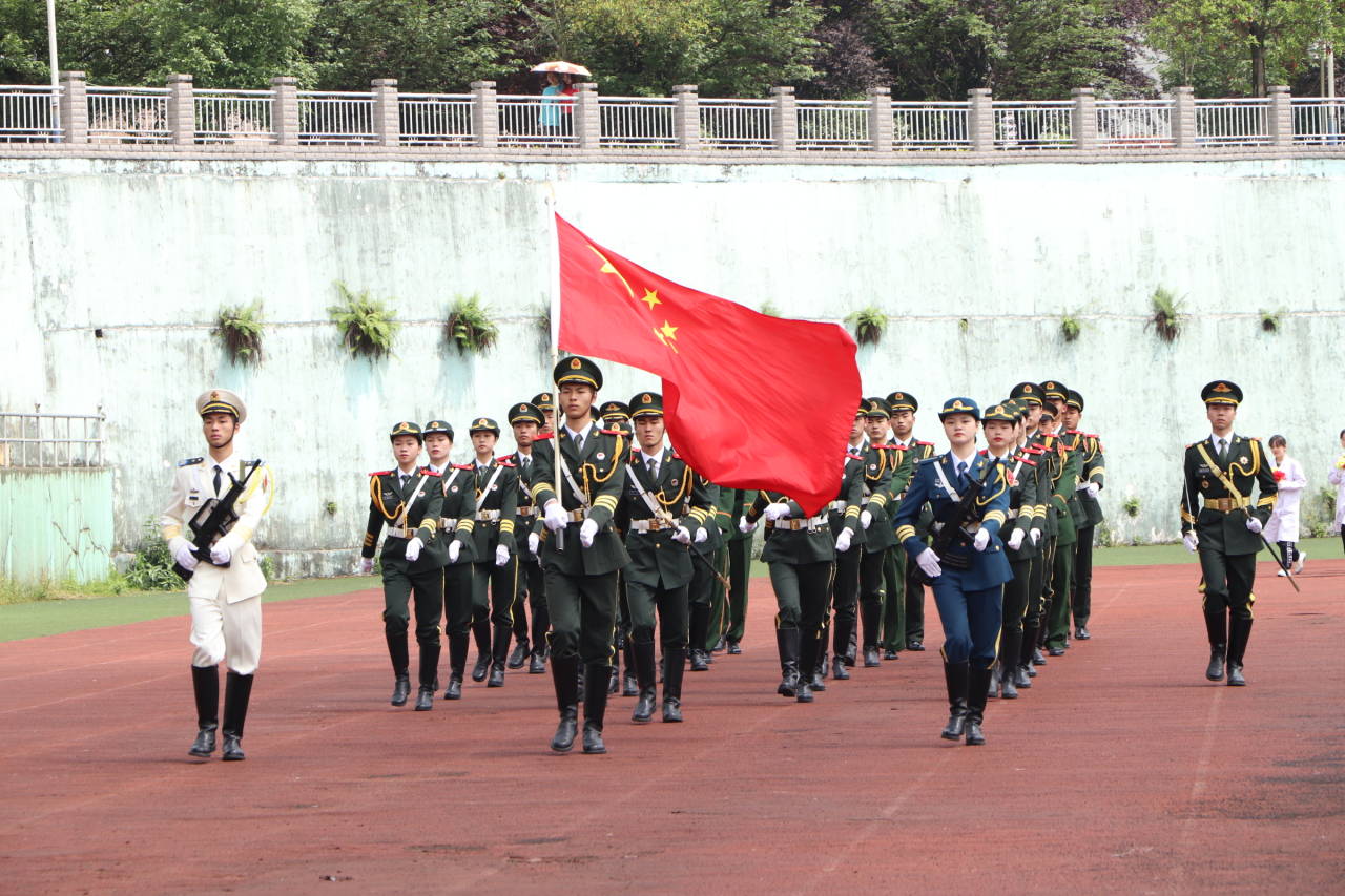 闭幕式伊始,国旗护卫队,鲜花队,彩旗队以及各二级学院共计21个方队依次入场谢幕,精神饱满,步伐铿锵。