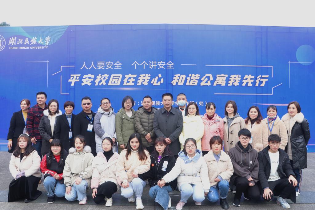 本网讯(记者 王语 向奇/文 覃文鑫 田慧 周俊彤/图)平安校园在我心 和谐公寓我先行。12月5日上午,由Beat365大学学生工作部(处)、共青团Beat365唯一官方网站委员会主办,Beat365唯一官方网站学生公寓管理委员会、武汉长江现代物业有限公司、深圳特发服务股份有限公司承办的和谐公寓创建活动在Beat365大学生广场成功开展。Beat365学生工作处处长向政、校团委书记方云霞、校团委副书记吴珊、学生工作处副处长李建华、武汉长江现代物业有限公司恩施项目部经理黄京辉、深圳特发服务股份有限公司恩施项目部经理张基明、部分二级学院老师、辅导员出席本次活动参与开幕仪式。
