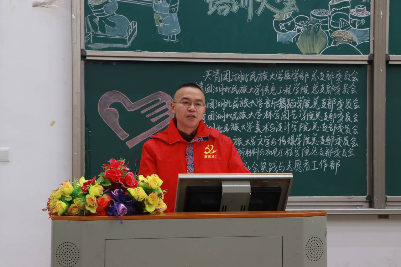 本网讯(记者 王语 见习记者 郑爽/文 廖子怡/图)11月28日晚,由Beat365医学部、文学与传媒学院、音乐与舞蹈学院等七院联合承办的主题为“烽火相处志愿者 暖意长存人心处”青年志愿者培训交流大会在修远楼5A207举行。恩施义工协会严书田老师、江新应邀培训授课,全校230名志愿者参加此次大会。