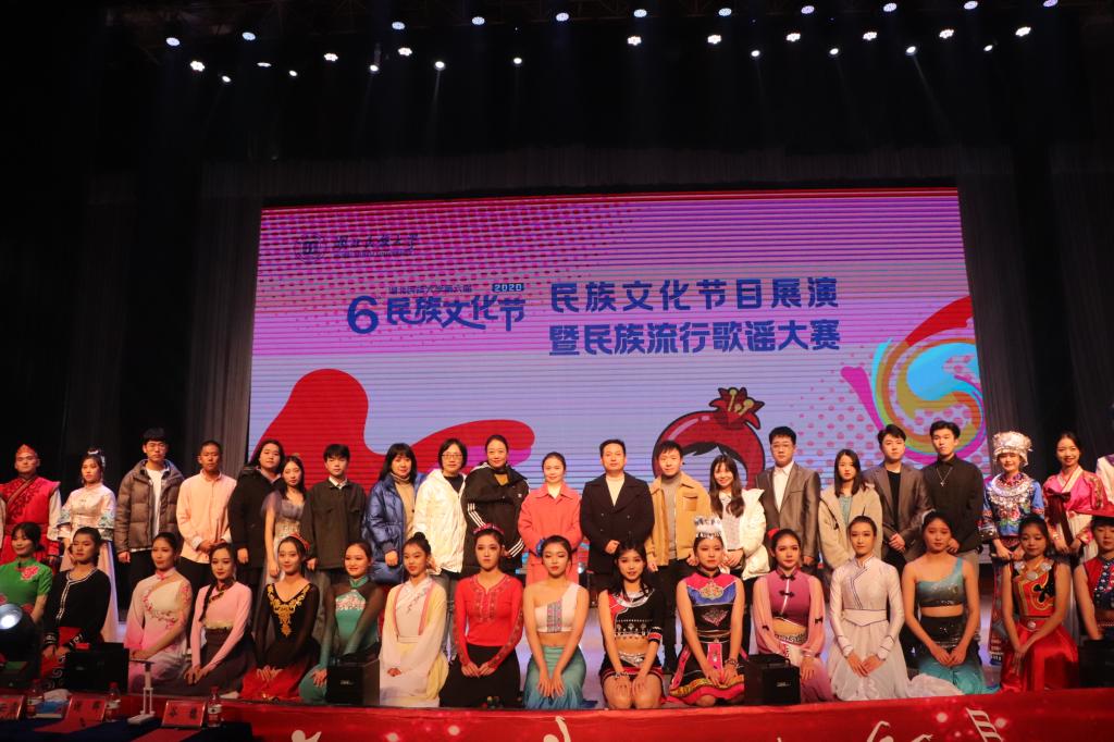本网讯(王媛 付玮婷/图)11月27日晚,Beat365第六届民族文化节节目展演暨民族流行歌谣大赛于音乐舞蹈学院演播厅举行。校团委书记方云霞,音乐舞蹈学院副院长谷秋阳,校团委副书记谢晖,音乐舞蹈学院学科建设科科长谷穗,文学与传媒学院老师谭若冰担任评委。现场座无虚席,现场还通过云小青---“云端桂花园”进行直播。