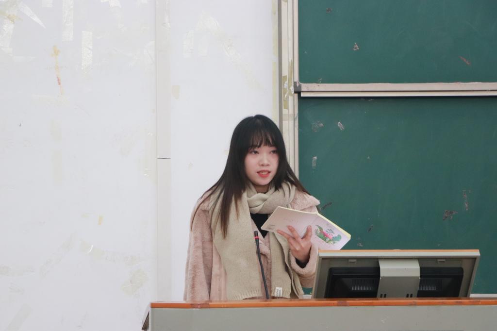 分享会上,来自学生会的皮卡提同学推荐了科幻图书《三体》,把大家带到光怪陆离的奇妙世界,并结合他的医学专业进行了深入解读。来自团委的李欣雨同学则以书中底层人物的“埋雷”故事引出《青苔不会消失》的介绍,让大家品味人间百味。来自社团管理部的秦维同学分享了朱光潜先生的《给青年的十二封信》,并从“读书的要义”“生活的哲学”和“人生的智慧”这三篇带给大家深刻的启发。国旗护卫队队员李晓雯结合《乡土中国》介绍了中国社会家庭观念等基本概况,并就乡村问题提出了她的独特见解。青年媒体中心的侯默同学通过阅读《习近平的七年知青岁月》介绍了习总书记的知青岁月,激励大家绽放自己的光芒,号召广大团学干部做好表率,多读书、读好书。