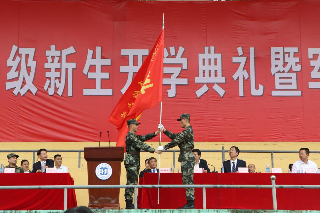 大会在庄严的国歌中拉开帷幕。大会伊始,全体起立、奏唱国歌。校长顿祖义为新学期开学典礼致辞,他表示“新生应以担当为本,博学慎思,持续锤炼学习能力”。并强调“知识是成才的基石,本领是担当的前提,唯有不断锤炼,才能紧跟时代步伐,实现从现象到本质的跨越”。 优秀校友代表汪灵海结合自己亲身经历发言,他以自己亲眼见证电商经历和十八年创业经验鼓励学生们创新技术,钻研互联网,努力提高专业修养,积极进取不忘本。随后,老生代表李凌霄、新生代表杨婧茹相继发言,学生会副主席皮卡提·阿布都热西宣读安全倡议书。紧接着,祝建波宣读军训团成立文件,吴建清为军训团授旗。宋强为大会做总结,他表示将以更高要求训练出一批更有素质不怕吃苦的学生。