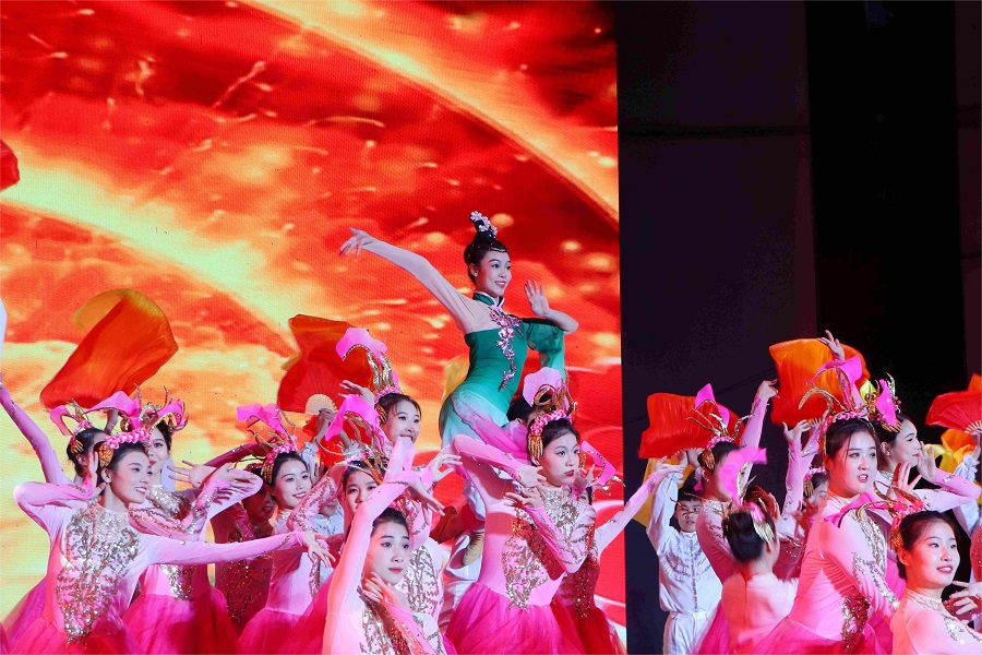 晚会在音乐舞蹈学院带来的开场舞《花开民大》中拉开帷幕。跳动的音符是舞台中央流转的热浪,青春的恣意在聚光灯下更加熠熠闪耀,表演者自信大方的舞姿展现出民大学子的青春活力。“相约民大”篇章以离退休人员工作部带来的舞蹈《情系茉莉花》开场,舞者身着特色服饰,脚步轻盈灵活、动作流畅自如,柔美的舞姿配合着韵律优美的音乐,精彩的演绎让现场观众感受到中国古典而优美的舞蹈艺术气息和优秀传统文化的独特魅力。歌曲串烧《青春与梦想》以青年人的视角讲述年轻人的成长,欢快的旋律、朝气蓬勃的歌词承载着少年的无限追求与梦想,展现出青年人坚韧自信、乐观进取的精神风貌。“青春启航”篇章在体育学院带来的舞蹈《新耀未来》中开启,语言艺术团带来情景朗诵《青春颂》,铿锵有力的声音,抑扬顿挫的语调,激励着万千学子启航新征程,再创民大新辉煌。音乐舞蹈学院带来南剧《新时代的追梦人》,该节目以富有民族特色的形式向民大学子展现中华儿女从逐梦到圆梦的奋斗之路,表达了表演者对新时代美好生活的热爱之情。晚会在节目《美丽中国》中完美落幕,舞者的表演充满激情与感染力,将民族文化和艺术风格融入到动作之中,在感受中国历史、文化和现代化成就的同时,更加有力地引导学生自信自强、踔厉奋发。