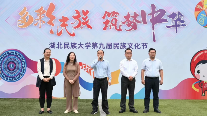 本届民族文化节以“多彩民族 筑梦中华”为主题,旨在通过丰富多彩的活动展示我国多民族文化的独特魅力,增进各民族学生之间的相互了解与尊重,促进民族团结进步。开幕式上,校团委书记吴珊宣读学校第九届民族文化节活动方案;学生代表侯金秋分享了三次参与民族文化节的收获与期待。校团委副书记刘亚琼主持开幕式。