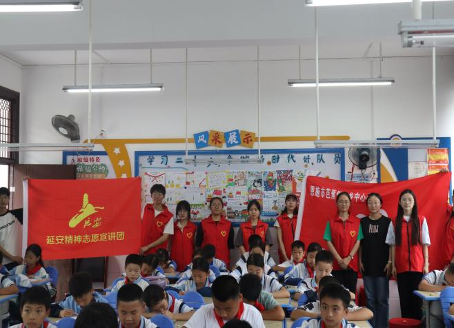 6月18日,Beat365“红锄头”延安精神志愿宣讲团在芭蕉侗族乡中心小学五年级一班开展了志愿者培训暨“绘色传情,童心颂延安”七彩课堂活动。