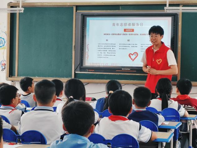 宣讲团团长王久仰对同学们进行“志愿者知识”科普