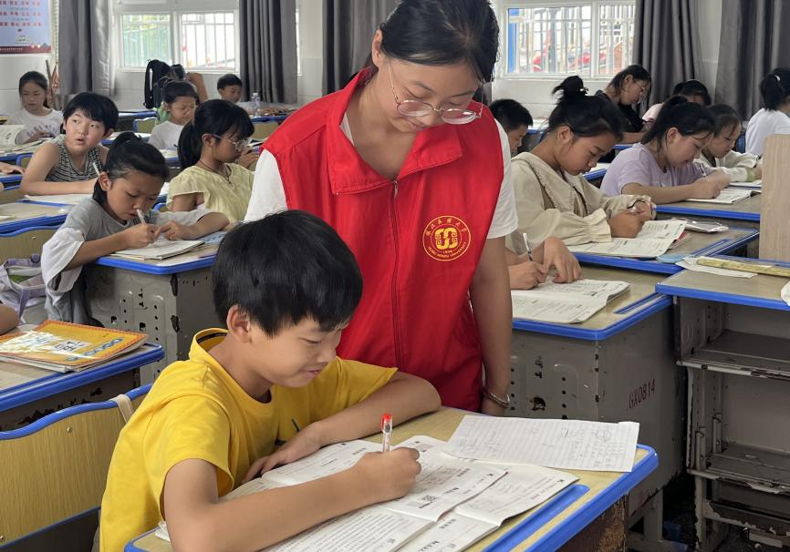 志愿者给小朋友辅导作业