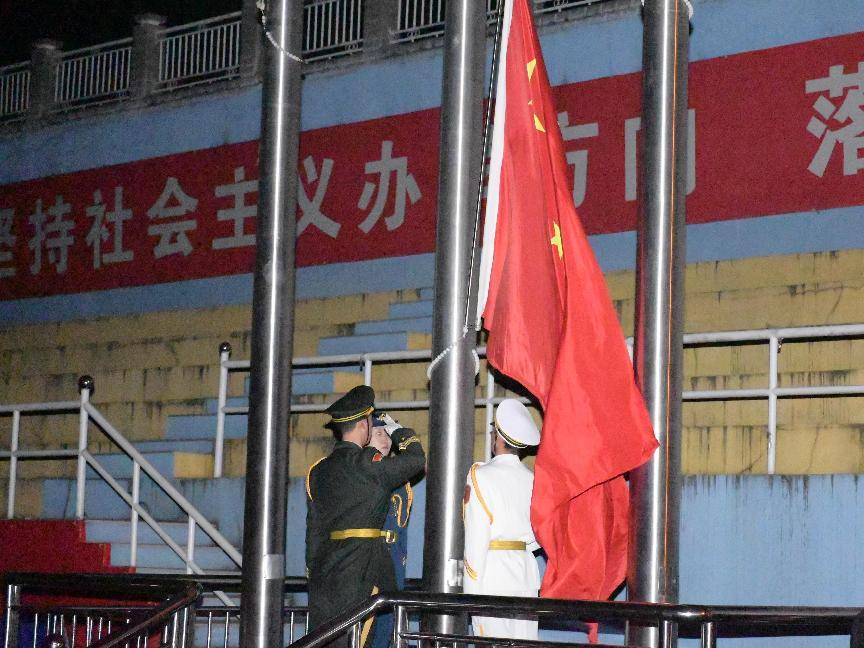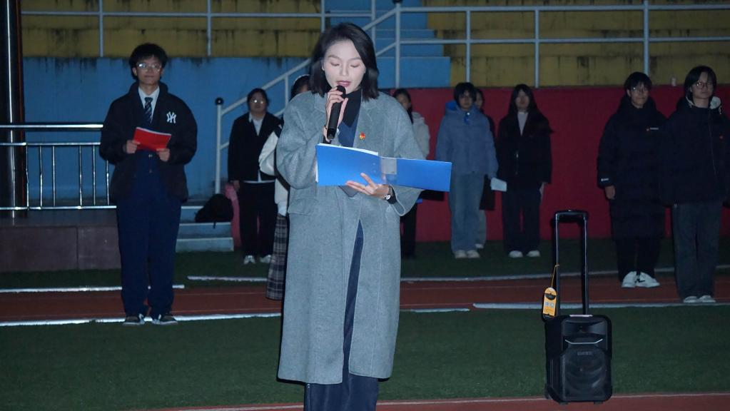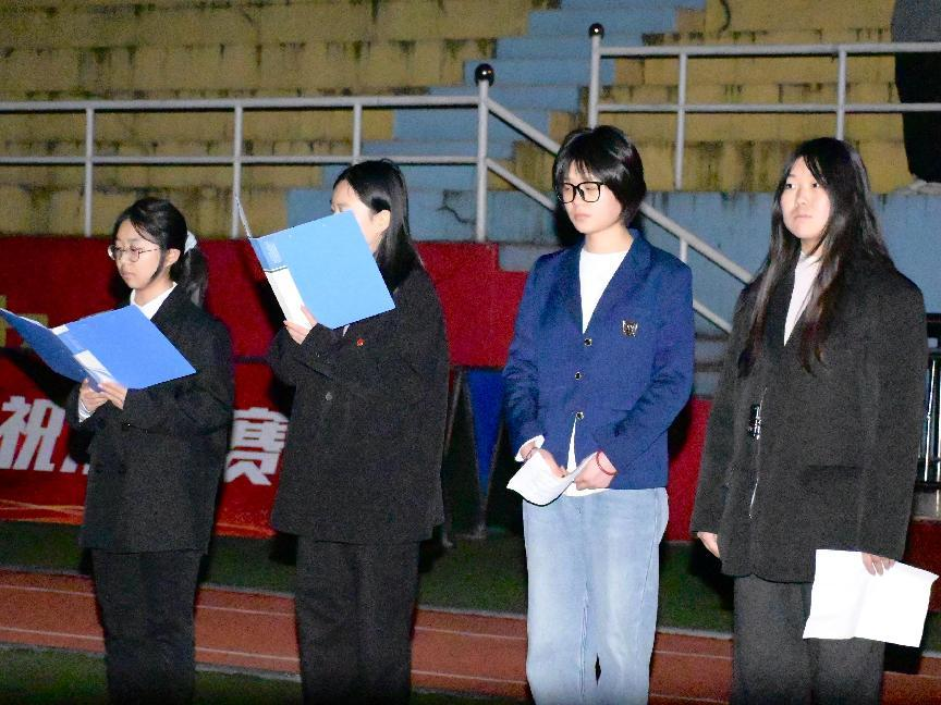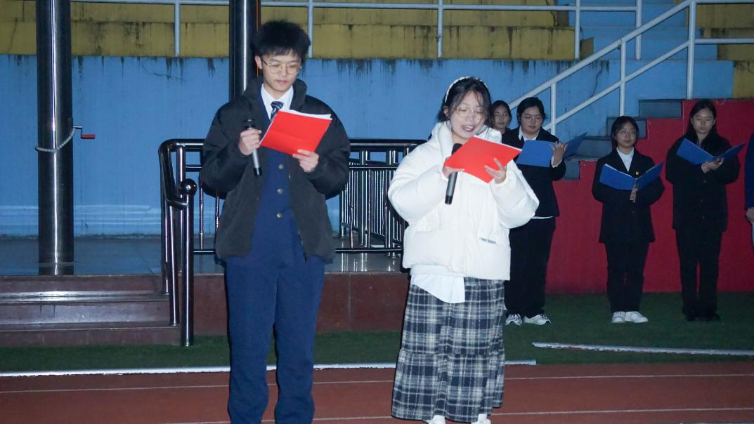 寒风凛冽,晨光熹微,早上6:40,五环体育场便聚齐了两个学院全体大一学子。国歌奏响,红旗飘扬,全体学生齐唱国歌与团歌,主持人彭继萌同学带领同学们重温入团誓词。