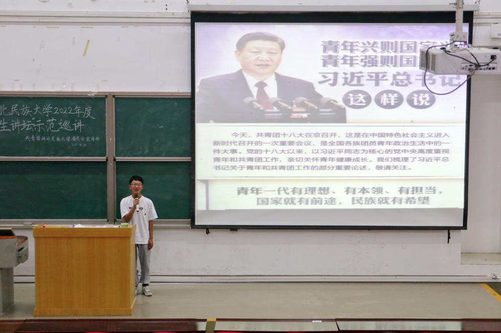 文学与传媒学院的俄底阿旺宣讲的主题为“春风荡漾又一年,踔厉奋发谱新篇”,他谈到作为新时代青年首先应有丰富的知识基础,同时应积极地投身社会服务,参与志愿活动。我们应以昂扬的姿态迎接即将到来的二十大,用优异的成绩向党的二十大献礼。