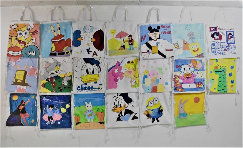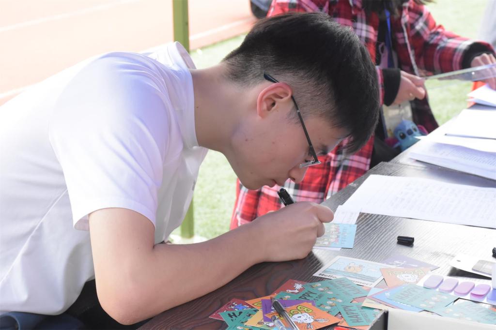 活动现场分为游戏区和白包DIY区两部分。在游戏区中,参与者通过知识竞答、水瓶大作战、猜歌名、气球保卫战四个环节获得积分,根据最终得分情况确定参与者礼物数量,礼物将由主办方提供给受助的留守儿童。在游戏环节中,每一位参与者都努力完成游戏任务,以获得更高的分数,从而换取到更多的礼物送给留守儿童,为他们送去力所能及的祝福。游戏不仅加深了参与者的获得感,还提高其参与志愿服务活动的积极性。在最终的积分统计处,参与者还可以在主办方提供的卡片上写下自己对留守儿童的寄语,通过文字缩短学生与留守儿童之间的距离,让爱心传递更温暖,更有力量。在白包DIY区,志愿者根据先前准备的图案在白包上用颜料进行绘画,借助温馨可爱的卡通形象,比如深受孩子们喜爱的海绵宝宝,派大星,唐老鸭等,让孩子们感受到陪伴与温馨。