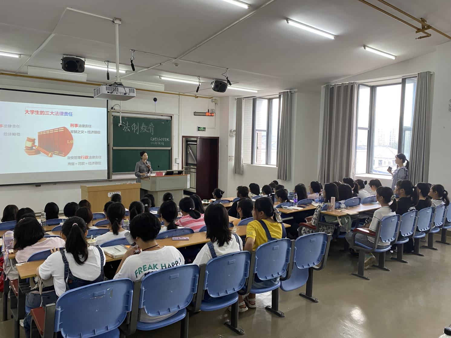 本网讯(记者 欧阳洁/文 戴启栋梁/图)为帮助新生了解法律知识,增强其法律意识,9月9日,我院学生会权益部在5A501教室举办法律知识宣讲教育讲座。湖北新理念律师事务所韩艳律师受邀担任主讲人,我院全体大一新生出席参与活动。
