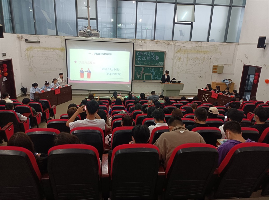 本网讯(记者 谌海容/文 卢子畅 陈舒琦/图)为提高我院学生思辨能力,培养团队协作意识,5月14日,我院学生会学风建设部在修远楼5B404学术演播厅举办与马克思主义学院的友谊辩论赛。我院优秀辩手谭芳、谭可可,马克思主义学院优秀辩手叶飞扬、张旗航受邀出席此次活动,我院及马克思主义学院部分学生参与本次活动。