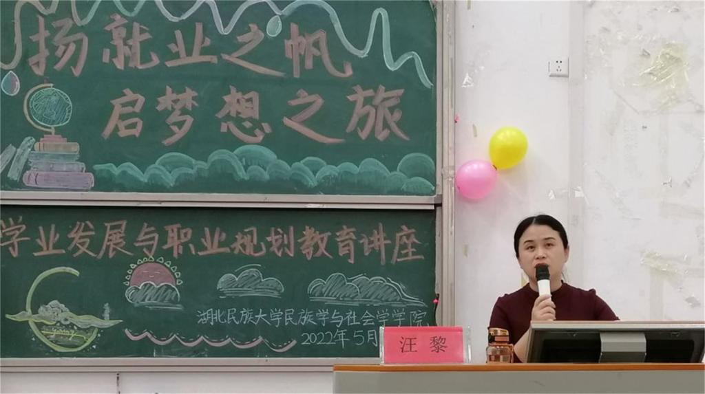 本网讯(记者 付欣淼/文 卢子畅 刘欢/图)为帮助我院学生更好地认识自我、了解自我,树立正确生涯规划理念,5月19日,我院团总支社会实践与志愿者工作部于5B404学术报告厅顺利开展以“扬就业之帆,启梦想之旅”主题的学业发展与职业规划教育讲座。我院民理教研室负责人汪黎老师受邀出席此次讲座,大一、大二全体学生参加本次讲座。