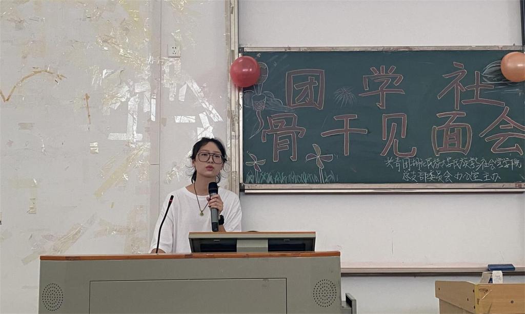 本网讯(记者 付欣淼/文 刘欢/图)为促进新生与团学干事之间的认识,加强新生对我院团学社的进一步了解,9月29日下午,我院于修远楼5B403学术报告厅顺利举办团学社2022年骨干见面会。团总支书记冷红豆受邀出席本次活动,大二大三团学社干部、全体大一新生参与本次活动。