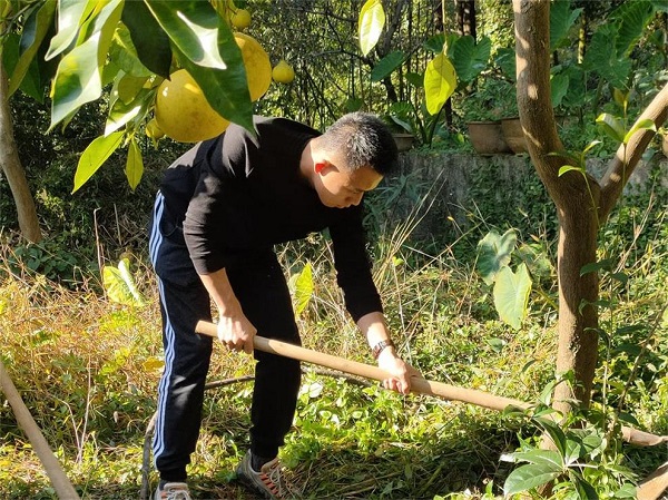 接着,参与人员来到林学园艺学院旁的柚类种植资源园。林学园艺学院副教授王明红老师为他们讲解除草、翻土以及采摘柚子的方法技巧,特别强调采摘柚子要“剪长柄再剪平”且需轻拿轻放。在王明红老师的指导下,采蜜柚、除杂草的工作顺利开展,王老师不仅讲解采蜜柚的诀窍,而且还说明储存蜜柚的方法,让参与者更加贴近生活、了解生活。