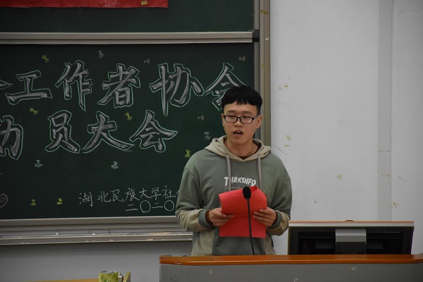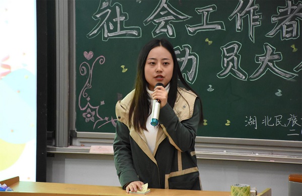 本网讯(记者 张筱玉 吴睿 官嘉莉/文 张莹 李俊良/图)为增强会员对社团的了解,鼓励会员参与干事招新和社团活动等后续工作,10月15日,我院社会工作者协会于修远楼5B509学术报告厅成功举办动员大会。我院团总支书记熊霞,社团指导老师张雯,团总支书记处肖洪,学生会主席团郑凤娇、方澳历,社会工作者协会第十届社长何套出席本次活动,各兄弟社团和社团新会员参与聆听。